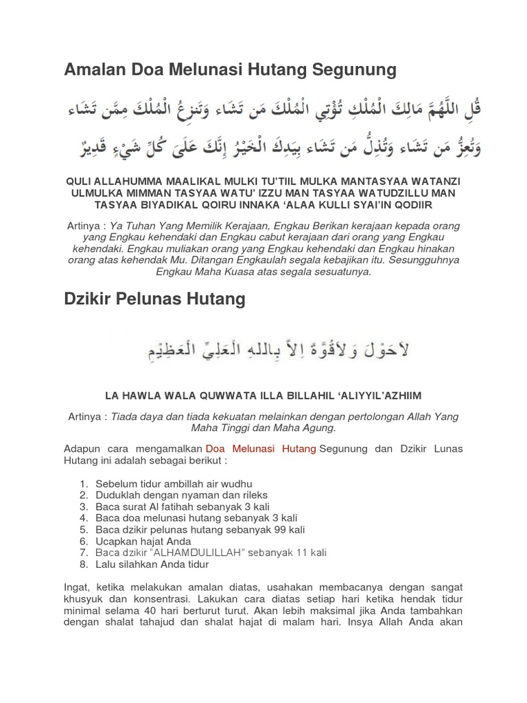 Doa Pelunas Hutang - Su Selviautama November 2016. Lantas ayat manakah yang dapat anda amalkan sebagai doa pelunas hutang yang diajarkan rasulullah? Sesungguhnya engkau maha kuasa atas segala sesuatu. Suatu hari rasulullah saw memergoki abu umamah.ra yang tengah dalam kesulitan. Persaingan kerja yang semakin hari. Jika ini kurang cocok silahkan pilih hasil yang ada dibawah.